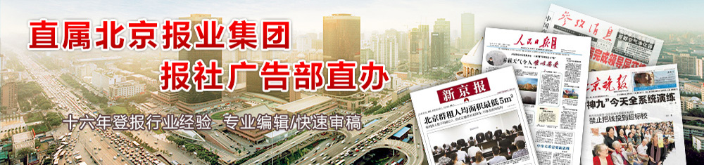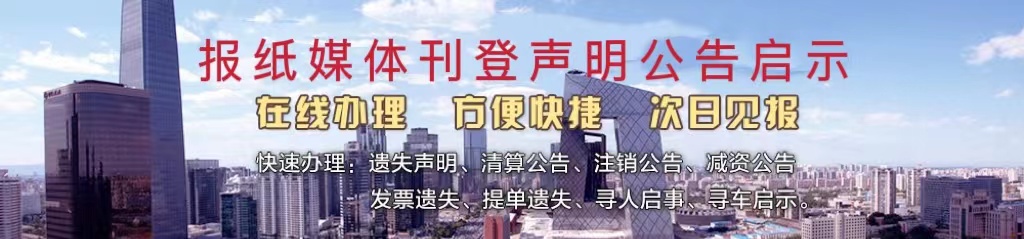 北京遺失聲明登報網隸屬于北京致融文化傳媒有限公司,整合的報紙包括《北京晚報》、《北京青年報》、《北京日報》、《北京晨報》、《京華時報》、《新京報》、《法制晚報》、《工人日報》、《人民日報》、《中國稅務報》、《中華工商時報》等各大省、市級報紙。專業為京城各企、事業單位及個人辦理遺失聲明、注銷公告、減資公告、清算公告、拍賣公告、證件掛失登報、法院公告、股權轉讓、變更公告、上市公告、尋人尋物啟事等聲明、公告類廣告登報。為方便客戶,我們不僅免費提供幾百種個人或者公司證件的登報聲明格式查詢,為客戶一站式解決證件遺失登報聲明公告方案,我們的服務原則是滿意為友情鏈接LINKS